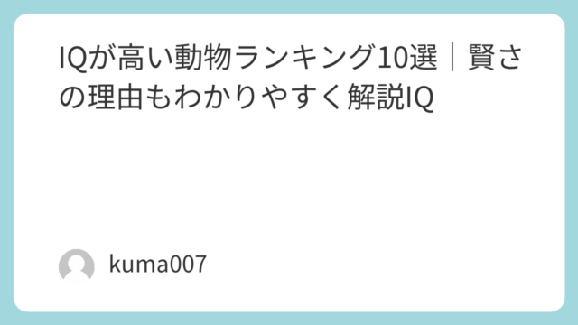 知能・能力ランキング IQが高い動物ランキング10選|賢さの理由もわかりやすく解説IQ 「一番賢い動物って何?」と聞かれると、人間以外にも驚くほど頭の良い動物がたくさんいます。この記事では、研究で知られている行動(道具使用・学習能力・コミュニケーションなど)をもとに、“賢い”とされる動物をランキング形式で10種類紹介します。※... 2026.01.06 知能・能力ランキング